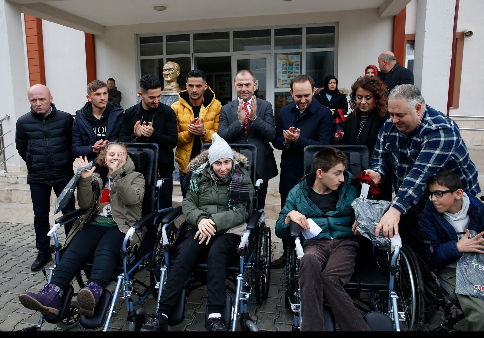 Ziyaretin ardından futbolcularımız ve özel öğrencilerle birlikte veliler hatıra fotoğrafı çektirdikten sonra engelli öğrencilere tekerlekli sandalyeleri teslim edildi.